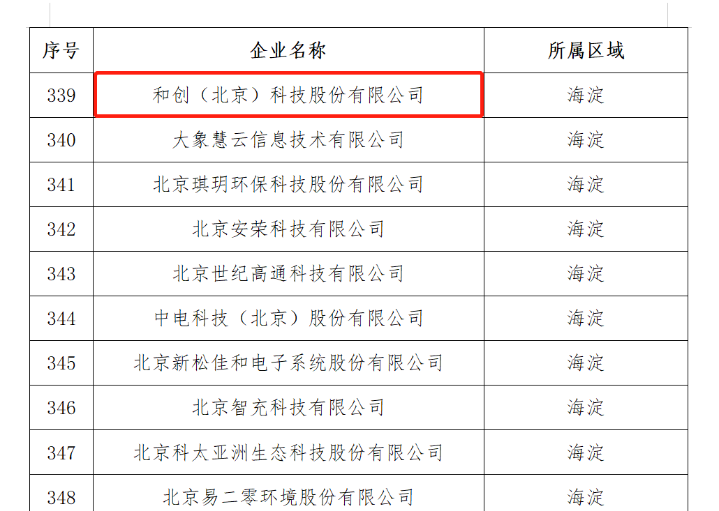 喜訊?|?和創科技入選北京市專精特新“小巨人”企業名單