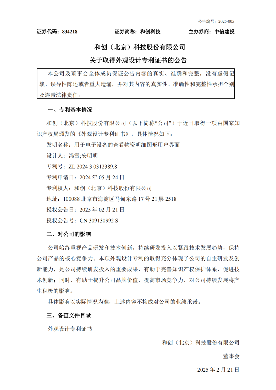 和創(chuàng)科技榮獲最新外觀設(shè)計專利