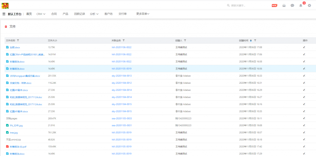 - 進(jìn)入文件后,有管理權(quán)限的用戶可以看見全部文件,支持表頭篩選、下載及刪除