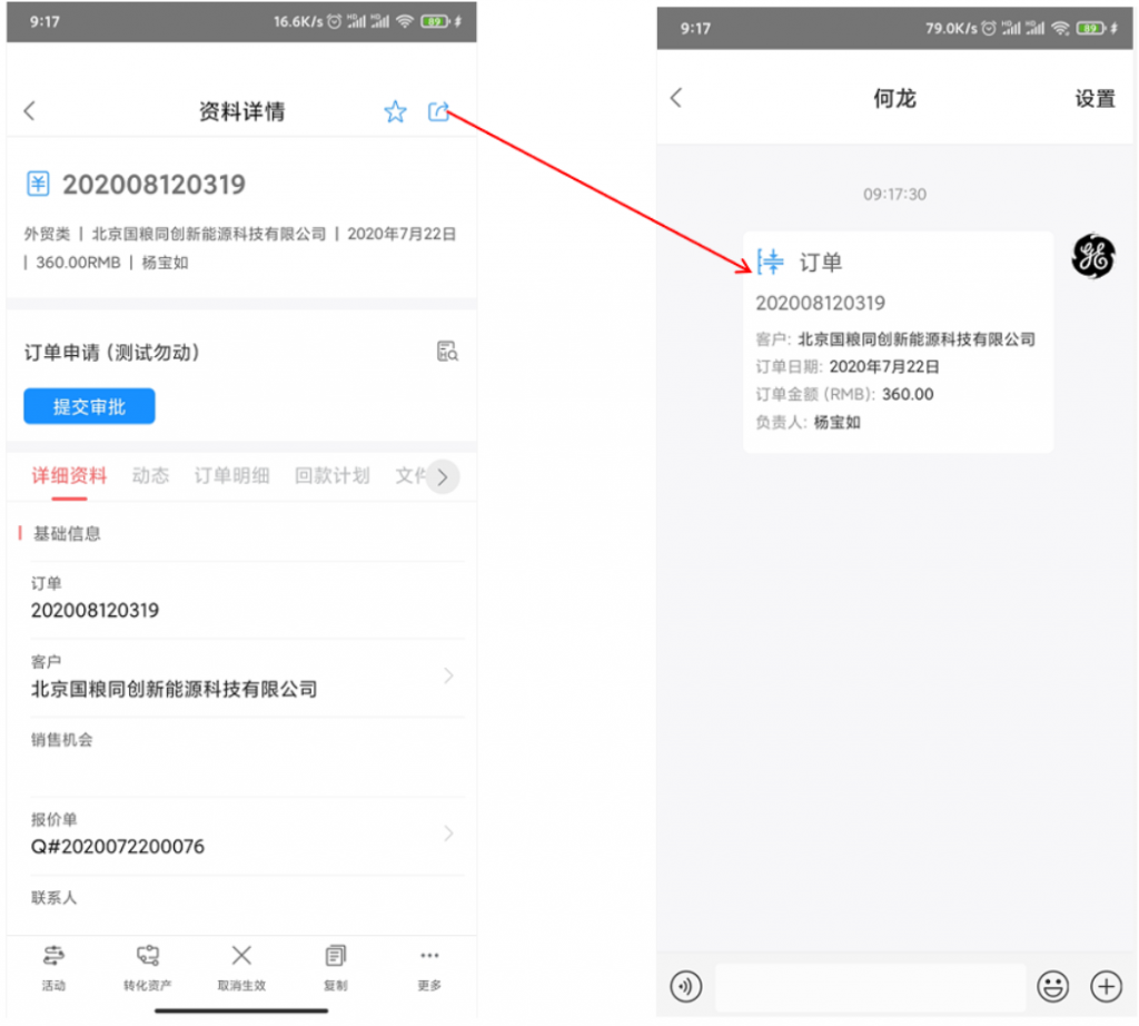 - 手機(jī)端可分享業(yè)務(wù)數(shù)據(jù)至IM,接受方可直接打開,但需要校驗(yàn)數(shù)據(jù)權(quán)限