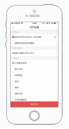 -訂/退單、出入庫(kù)單、調(diào)撥單、成本調(diào)整入庫(kù)單、采購(gòu)訂退單等均支持標(biāo)準(zhǔn)模板打印自定義信息,其中訂單支持藍(lán)牙打印