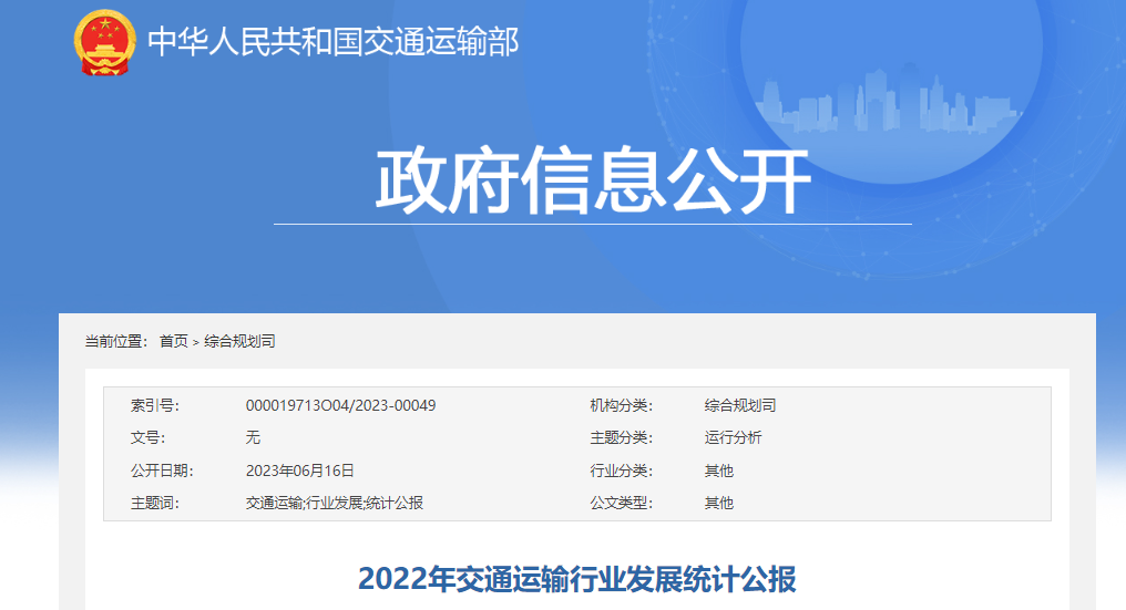 行業(yè)熱點?|?《2022年交通運輸行業(yè)發(fā)展統(tǒng)計公報》發(fā)布!投資3.8萬億元!