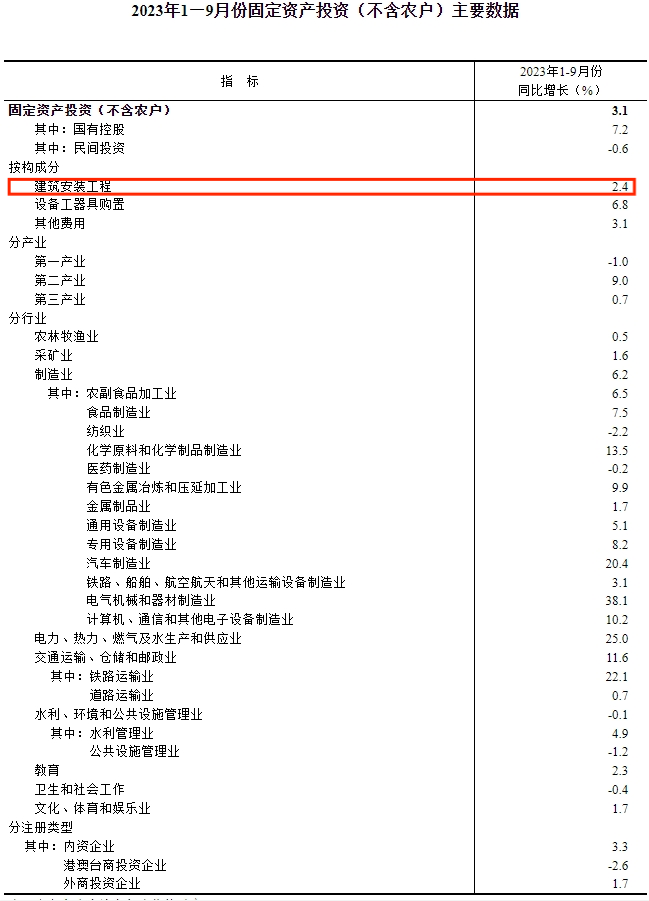 前三季度,全國固定資產(chǎn)投資(不含農(nóng)戶)375035億元,同比增長3.1%;扣除價格因素影響,同比增長6.0%。