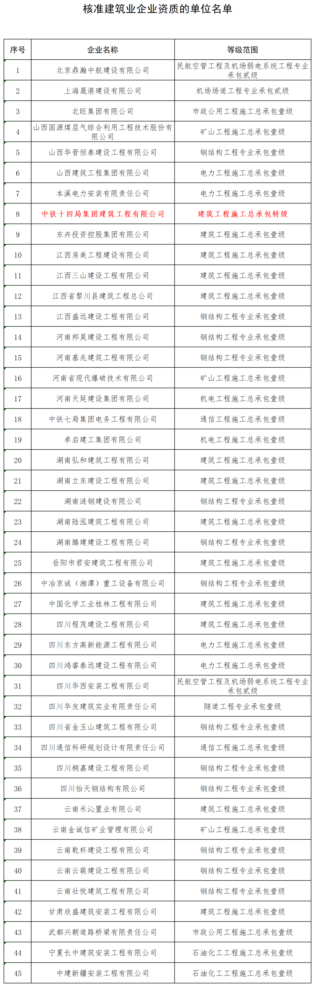 最新一批建設工程企業(yè)資質(zhì)名單公布!1家建企“升特”!