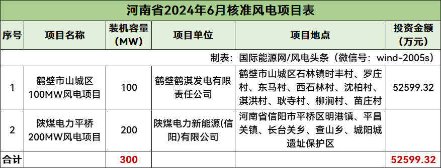 河南核準(zhǔn)2個(gè)風(fēng)電項(xiàng)目,總規(guī)模300MW,總投資52599.32萬元,均為陸上風(fēng)電項(xiàng)目。