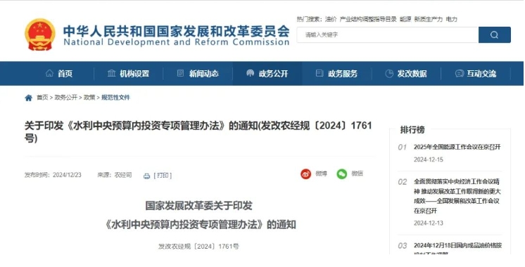 行業(yè)政策?|?國家發(fā)改委發(fā)文!加強水利中央預(yù)算內(nèi)投資專項管理!