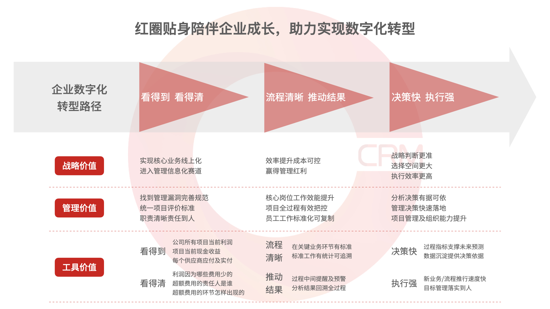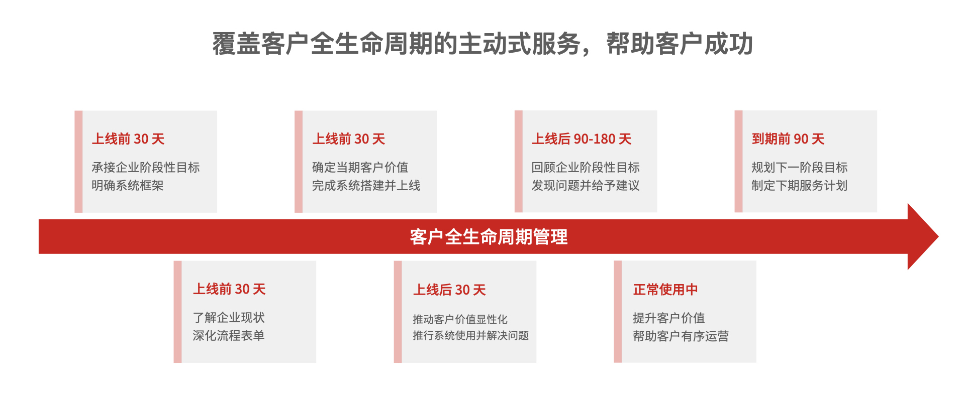 以客戶為中心的全生命周期管理,以 5-10 年企業經營目標為導向的階段性價值兌現,陪伴企業成長,助力企業實現數字化轉型